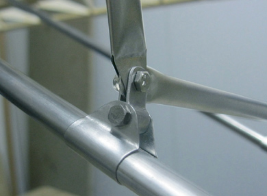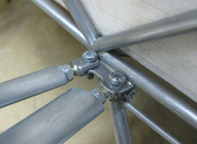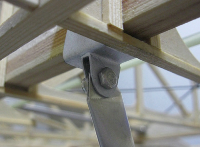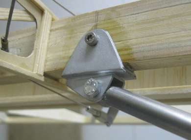 | Kabelführung zum rechten Querruderservo Beim Original sind dies die Benzinleitungen. | Kabelführung zum linken Querruderservo Hinter der Rippe befindet sich die Steckverbindung des Kabels. | |